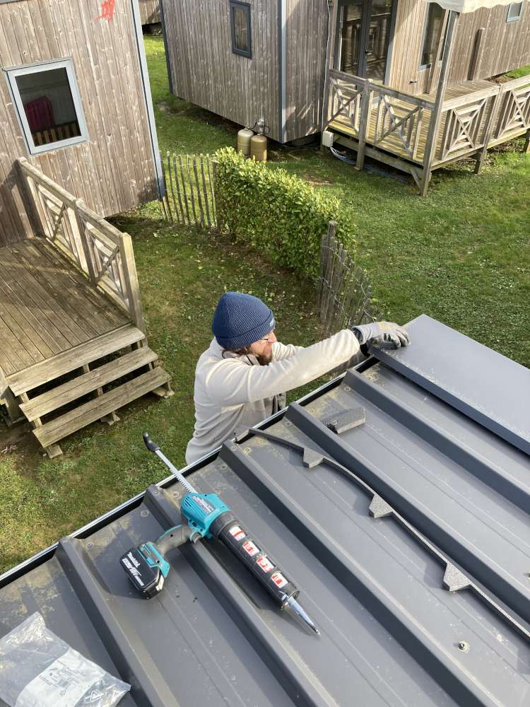 Quand une toiture tôle a laissé passer l’eau, nous contrôlons également les zones proches, afin de limiter les dégâts des eaux et de sécuriser l’étanchéité du mobil-home.